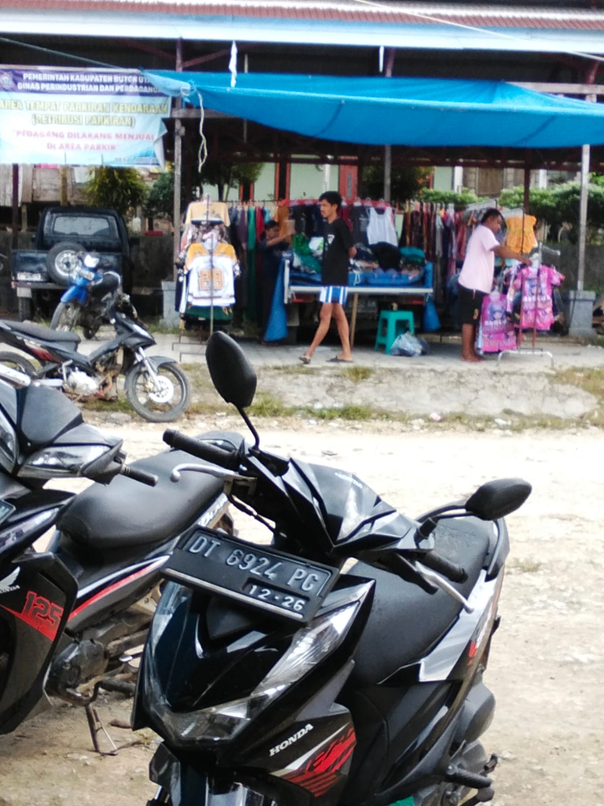 Area parkir pasar kecamatan Kulisusu barat desa labulanda di jadikan lapak penjual pakaian