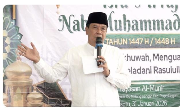Tangerang, Lintashukrimindonesia.com -Bupati Tangerang, Moch. Maesyal Rasyid menghadiri pengajian rutin yang dirangkaikan dengan peringatan Isra Mi’raj Nabi Muhammad SAW Majelis Taklim Al-Munir yang digelar di Gedung Majelis Taklim Al-Munir Kec. Pagedangan, Sabtu (31/01/26)