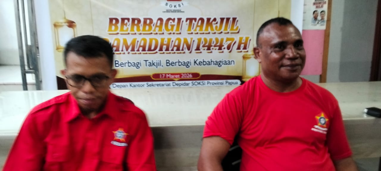 Dari pantauan media ini, tampak pengurus DPD Depidar SOKSI Provinsi Papua dihadiri wakil ketua Moses Albert Mandibodibo, wakil Sekretaris Junadin, bendahara Indri dan sejumlah pengurus dengan mengenakan seragam lengkap organisasi berwarna merah sambil membentangkan spanduk bertuliskan Berbagi Takjil Ramadhan 1447 H, berbagi kebahagiaan.”