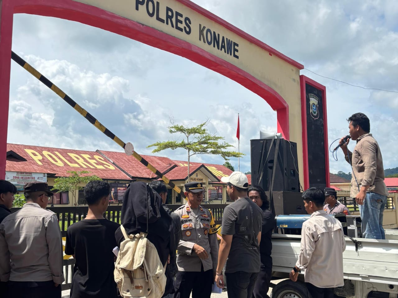 Konawe, Lintashukrimindonesia.com: Gerakan Aktivis Mahasiswa Sulawesi Tenggara (GAM Sultra) menggelar aksi unjuk rasa di Polres Konawe dan Kejaksaan Negeri Konawe untuk mendesak aparat penegak hukum segera mengusut dugaan aktivitas tambang Galian C ilegal di Kecamatan Meluhu serta dugaan penggunaan material ilegal tersebut pada proyek peningkatan dan rehabilitasi jalan yang bersumber dari APBD Kabupaten Konawe Tahun Anggaran 2025.