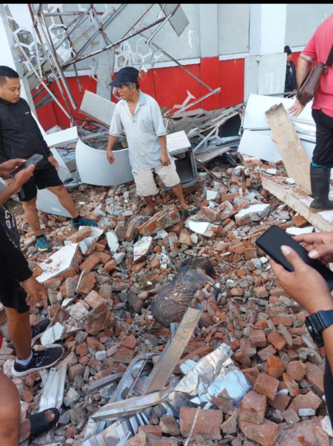 Laporan awal menyebutkan satu orang meninggal dunia setelah tertimpa reruntuhan di Gedung KONI Manado.