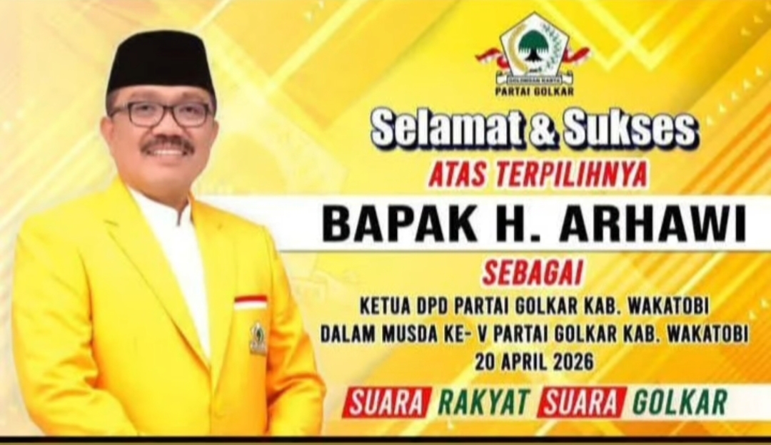 Wangi-wangi (WAKATOBI), LintasHukRimIndonesia.Com – 20 April 2026_ H. Arhawi terpilih menjadi ketua DPD Partai Golongan Karya (GOLKAR) kabupaten Wakatobi periode 2026-2031.