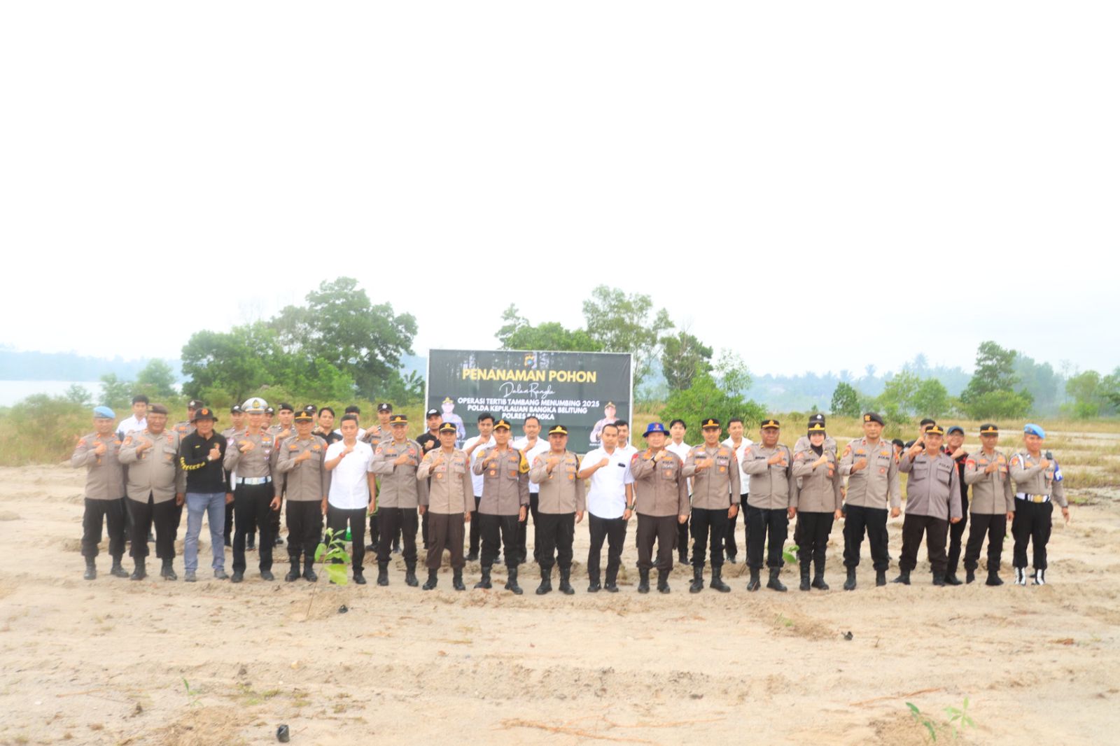 Polres Bangka Lakukan Penanaman Pohon dalam Rangka Operasi Tertib Tambang Menumbing 2025
