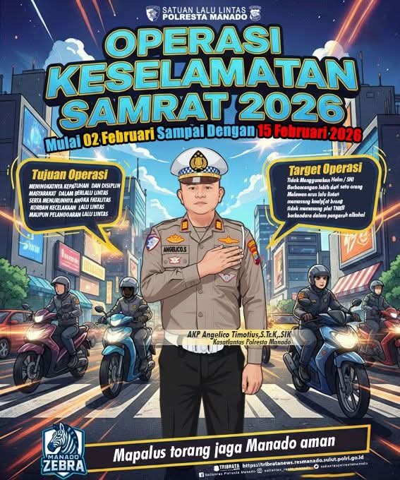 “Keselamatan adalah tanggung jawab bersama. Melalui Operasi Keselamatan Samrat 2026, kami mengajak seluruh masyarakat untuk tertib berlalu lintas demi keamanan dan kenyamanan bersama,” demikian pesan yang disampaikan dalam publikasi resmi Satlantas Polresta Manado.