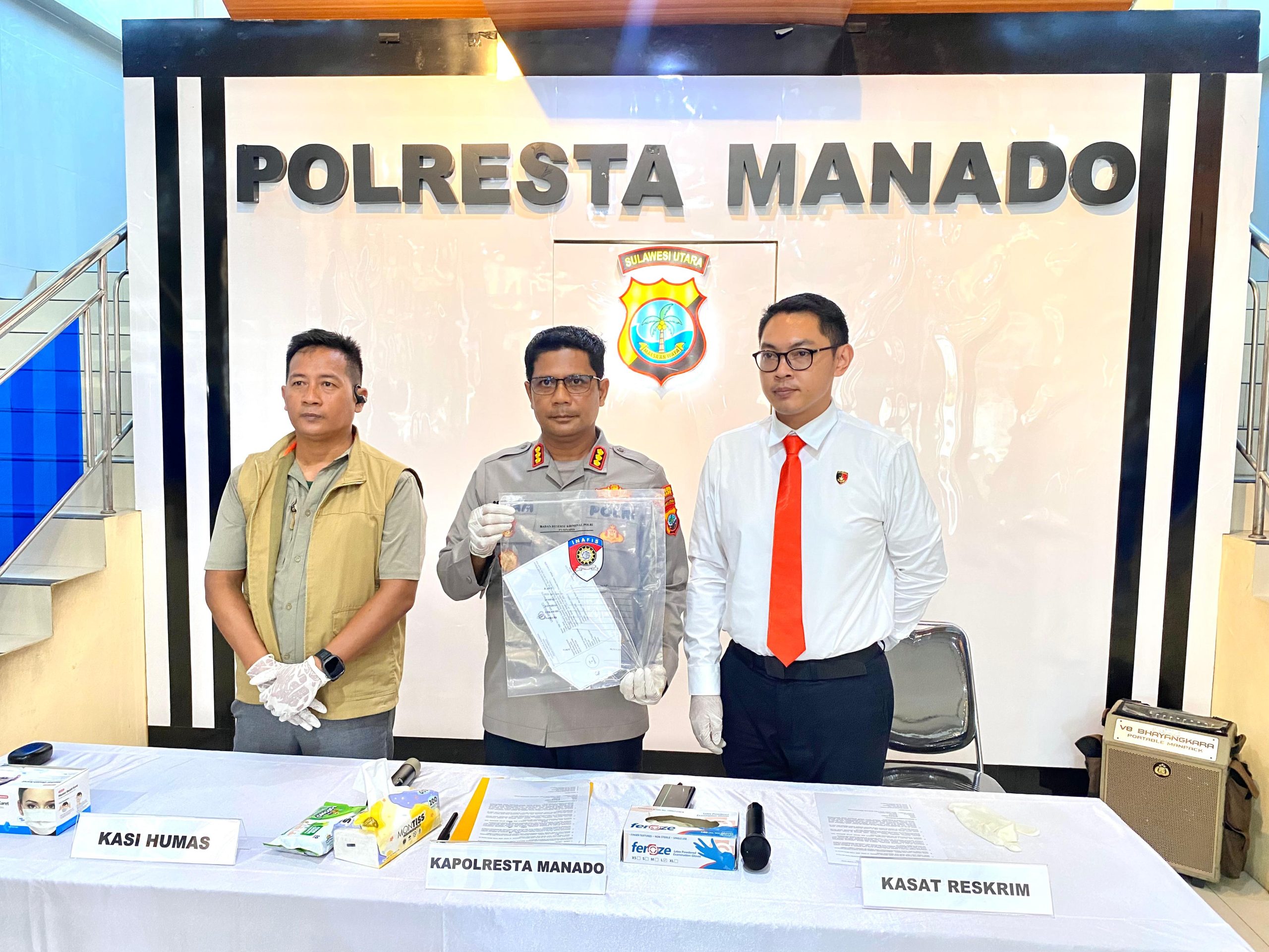Kegiatan press release tersebut dipimpin langsung oleh Kapolresta Manado Kombes Pol. Irham Halid, didampingi Kasat Reskrim AKP Elwin Kristanto dan Kasi Humas Polresta Manado Iptu Agus Haryono, Senin (13/4/2026).