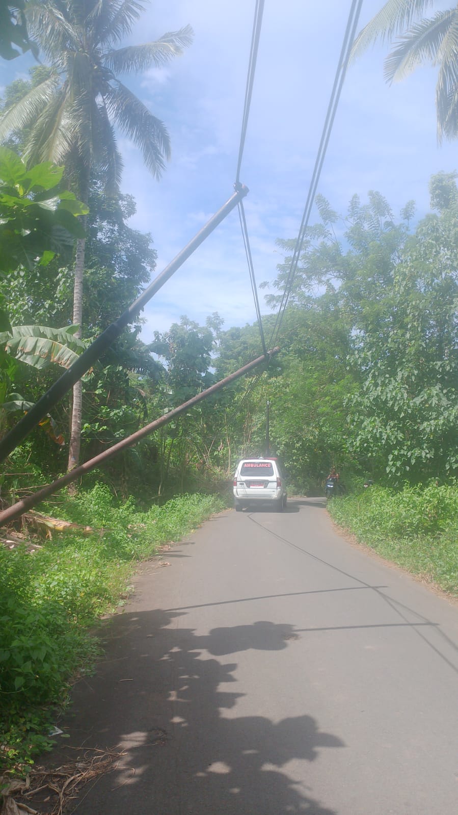 ” Kami setiap hari antar anak sekolah lewat sini. Tiangnya sudah miring sekali. Kami takut, tapi mau lewat jalan mana lagi?” ujar seorang orang tua murid SMP dengan nada cemas.